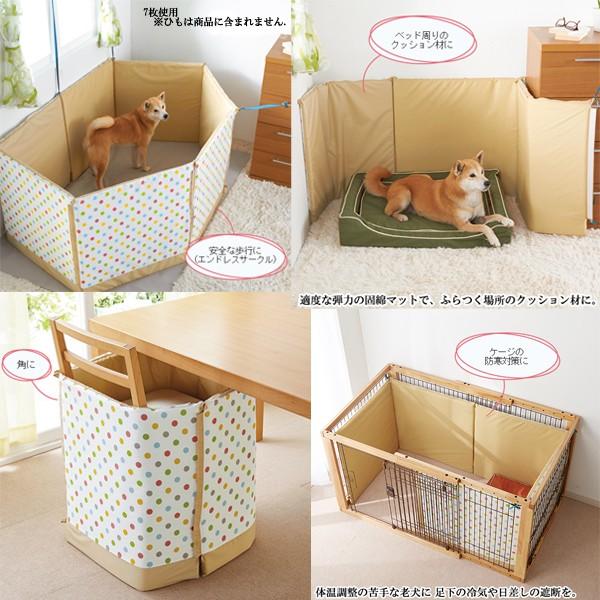 商品情報 認知症による徘徊症状が出始めた子の室内歩行やケガ防止に役立つクッションガード。ワンタッチテープで連結でき、柔らかい簡易サークルにしたり、ケガを防ぐクッション材として使えます。四隅のループにお手持ちのひもを通せば固定も可能(取付場所がない場合は市販のフックなどをご利用ください)。角のない安全な部屋づくりで目を離した際のケガ防止、血行促進、床ずれ予防を。飼い主さんの介護疲れや寝不足予防にも。 徘徊や視力低下がみられる子が安全に歩けます。 ドアのすき間やイスの下のはさまり防止に。後進できない子の安全対策。 ひなたぼっこプロジェクト この商品は、徘徊、昼夜逆転、夜鳴きなどによる大きな負担を抱えながら介護を頑張っておられる飼い主さんを応援するため、「幸せな介護」、「満足できる看取り」をコンセプトとし、快適な老後ケア商品の開発に取り組んでいます。 |